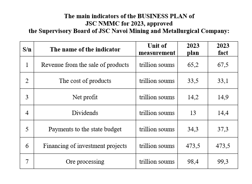 Approved BUSINESS PLAN of JSC NMMC for 2023