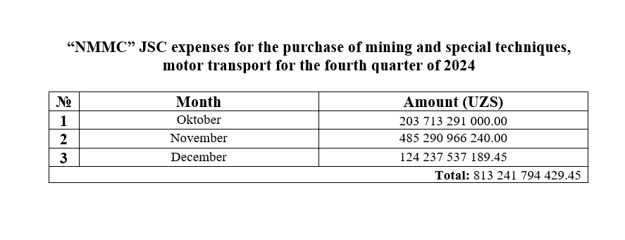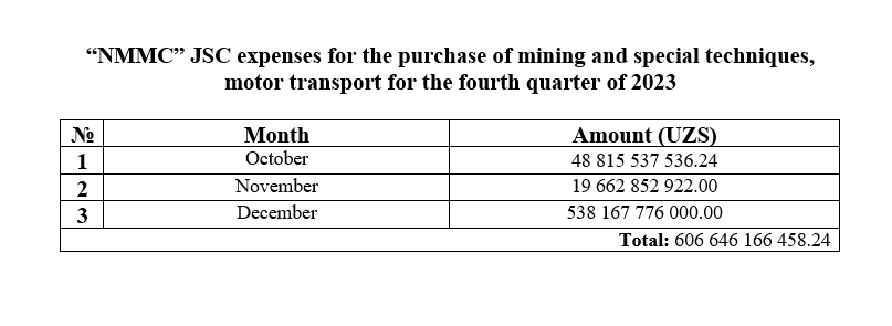 Purchase of transport for the fourth quarter of 2024