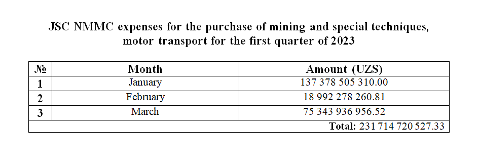 Purchase of transport for the first quarter of 2023