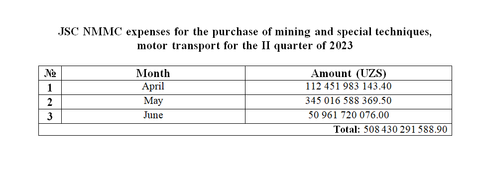 Purchase of transport for the second quarter of 2023