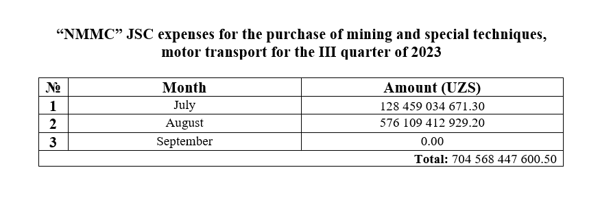 Purchase of transport for the third quarter of 2023