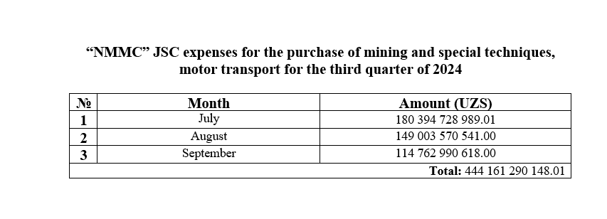 Purchase of transport for the third quarter of 2024