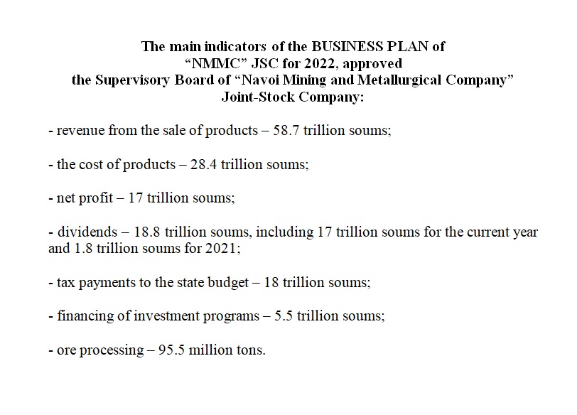 Approved BUSINESS PLAN of “NMMC” JSC for 2022