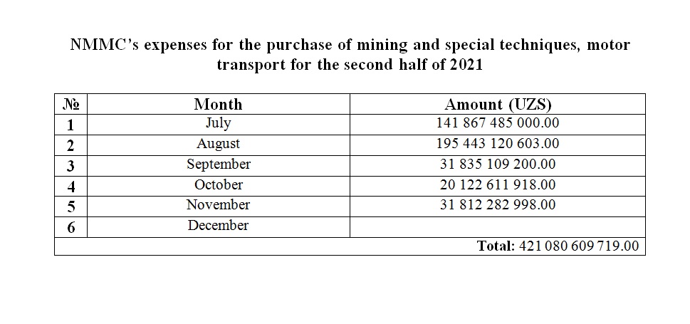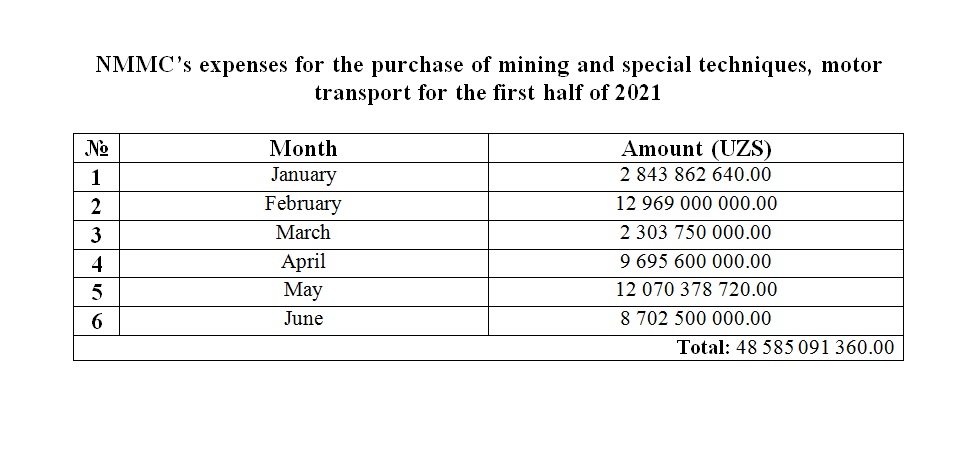Purchase of transport for the second half of 2021