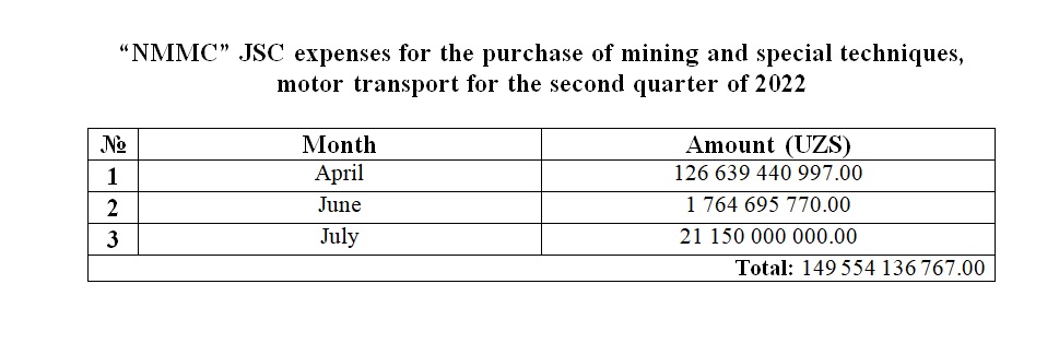 Purchase of transport for the second quarter of 2022