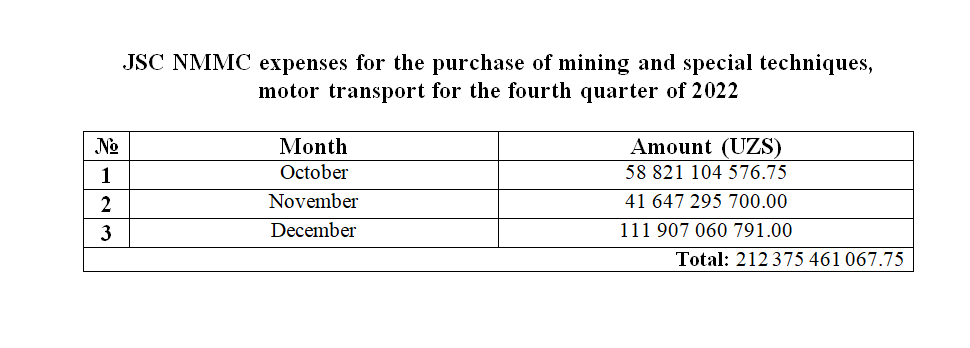 Purchase of transport for the fourth quarter of 2022