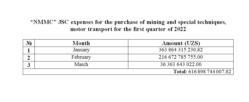 Purchase of transport for the first quarter of 2022