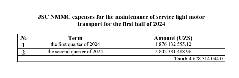 Purchase of transport for the second quarter of 2024