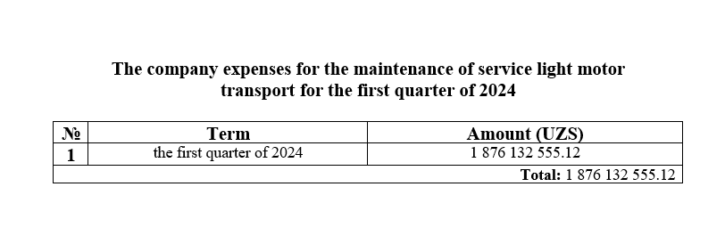 Purchase of transport for the first quarter of 2024