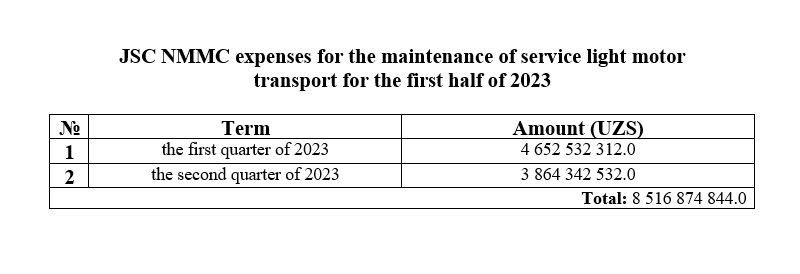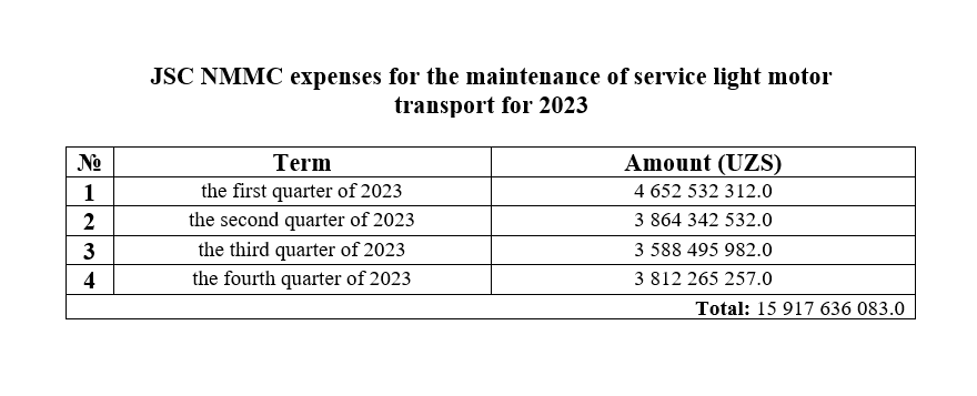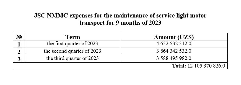 Maintenance of service transport for 9 months of 2023