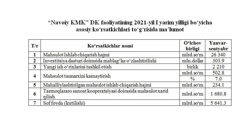 2021-yil I-yarim yillik bo‘yicha asosiy ko‘rsatkichlar to‘g‘risida maʼlumot
