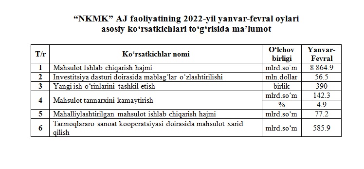 2022-yil yanvar-fevral bo‘yicha asosiy ko‘rsatkichlar to‘g‘risida maʼlumot