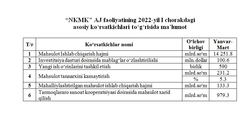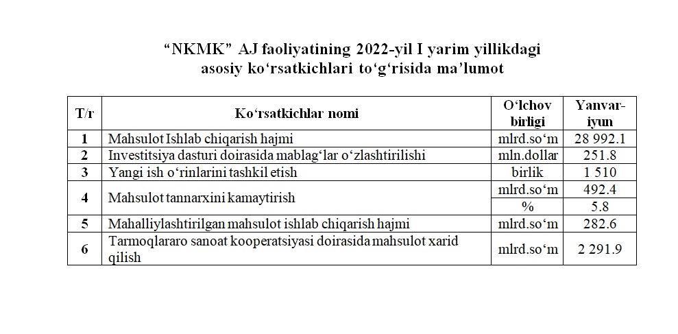 2022-yil I yarim yillikdagi asosiy ko‘rsatkichlar to‘g‘risida maʼlumot