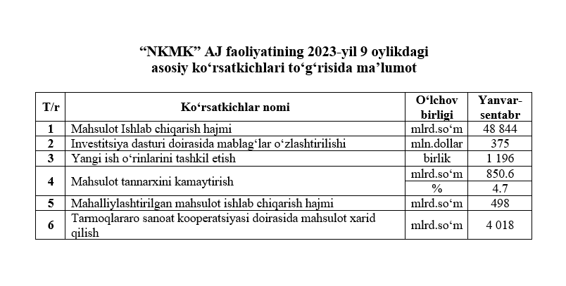 2023-yil 9 oylikdagi asosiy ko‘rsatkichlar to‘g‘risida maʼlumot