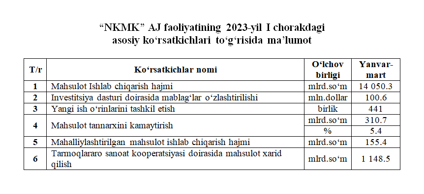 2023-yil I chorakdagi asosiy ko‘rsatkichlar to‘g‘risida maʼlumot