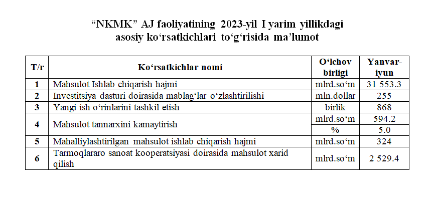 2023-yil I yarim yillikdagi asosiy ko‘rsatkichlar to‘g‘risida maʼlumot