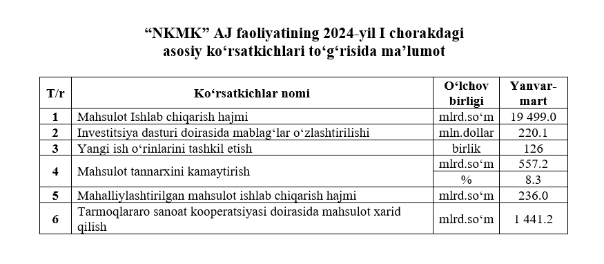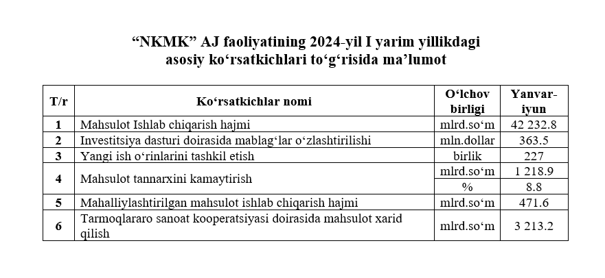 2024-yil I yarim yillikdagi asosiy ko‘rsatkichlar to‘g‘risida maʼlumot