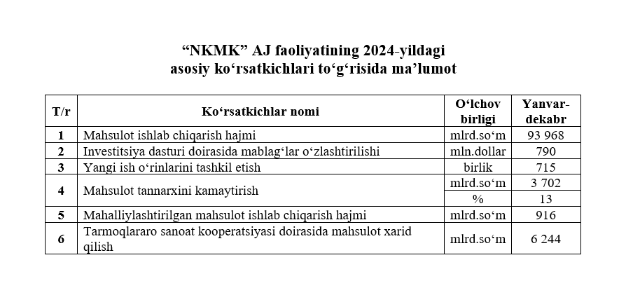 2024-yildagi asosiy ko‘rsatkichlar to‘g‘risida maʼlumot