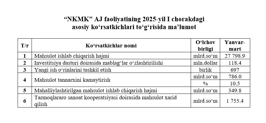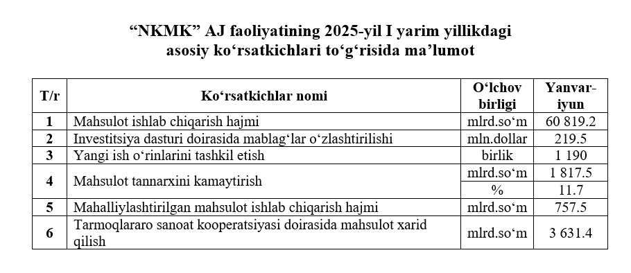 2025-yil I yarim yillikdagi asosiy ko‘rsatkichlar to‘g‘risida maʼlumot