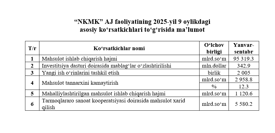 2025-yil 9 oylikdagi asosiy ko‘rsatkichlar to‘g‘risida maʼlumot