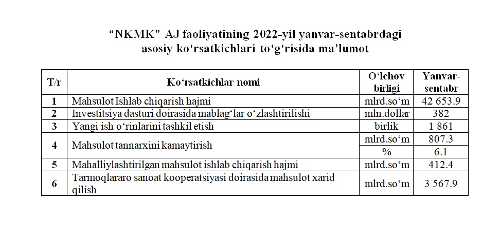 2022-yil yanvar-sentabrdagi asosiy ko‘rsatkichlar to‘g‘risida maʼlumot