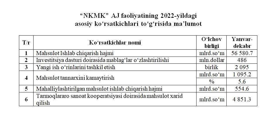 2022-yildagi asosiy ko‘rsatkichlar to‘g‘risida maʼlumot