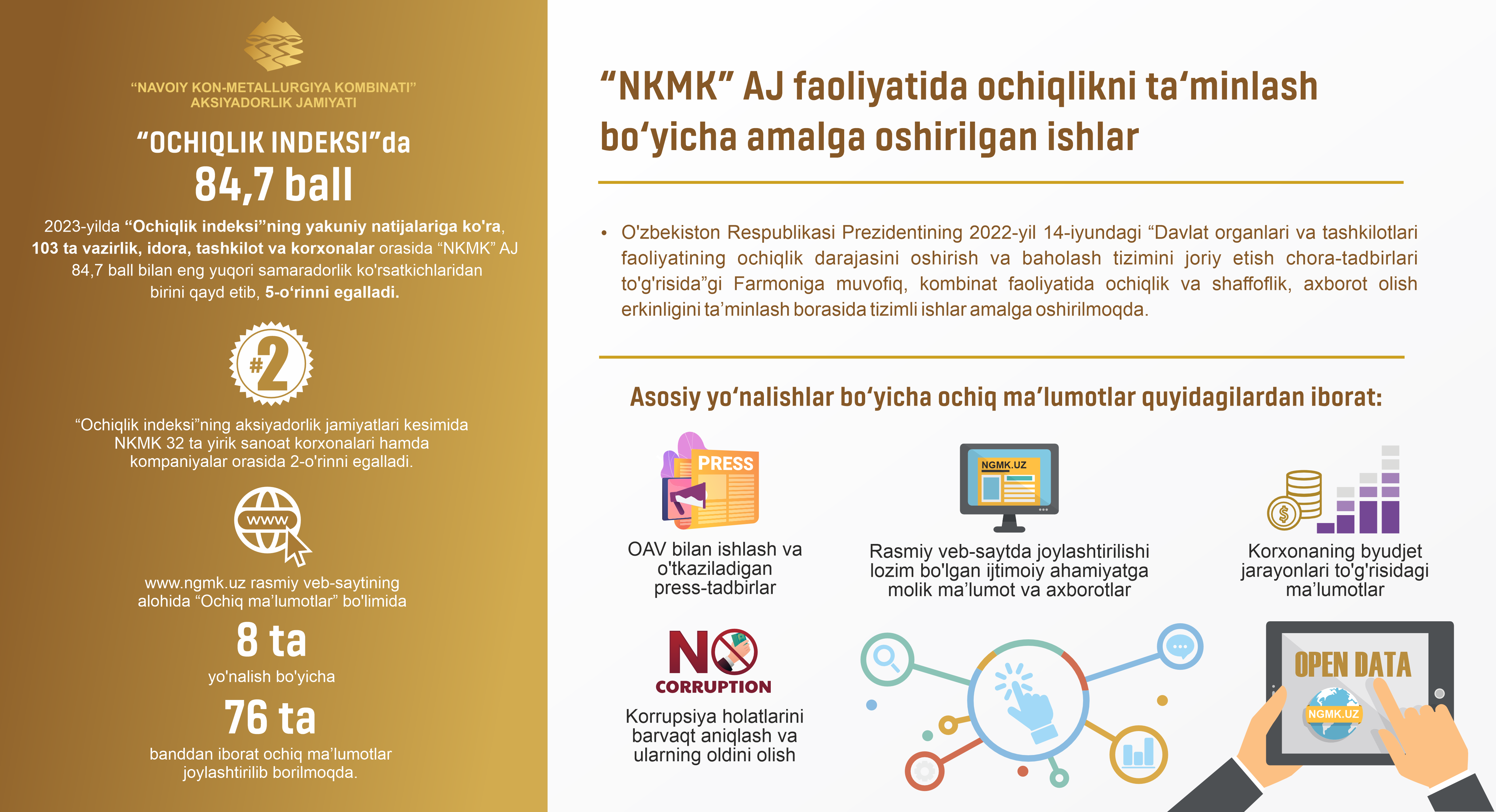 “NKMK” AJ faoliyatida ochiqlikni taʼminlash bo‘yicha INFOGRAFIKA