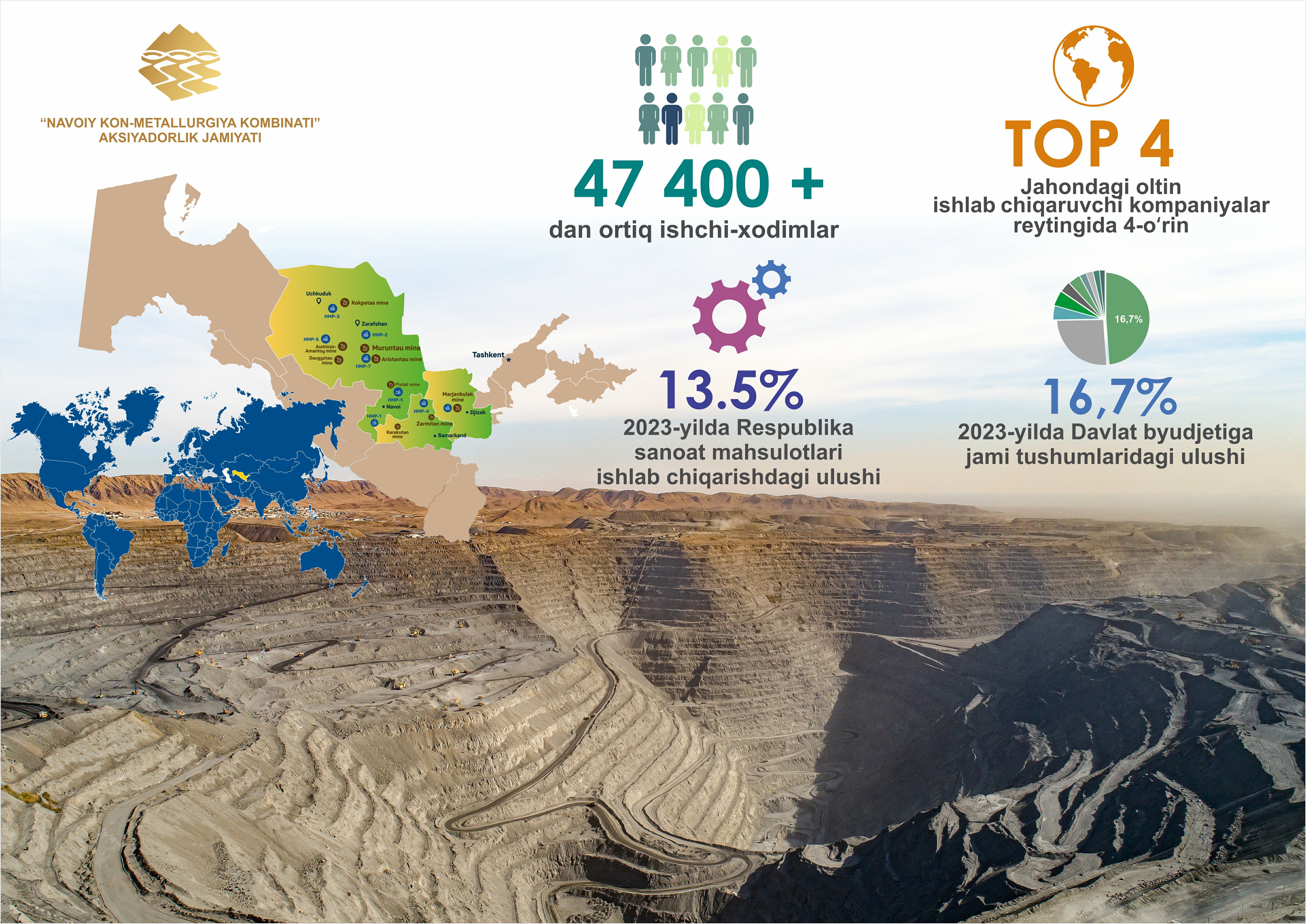 "Navoiy kon-metallurgiya kombinati" AJ faoliyati raqamlarda